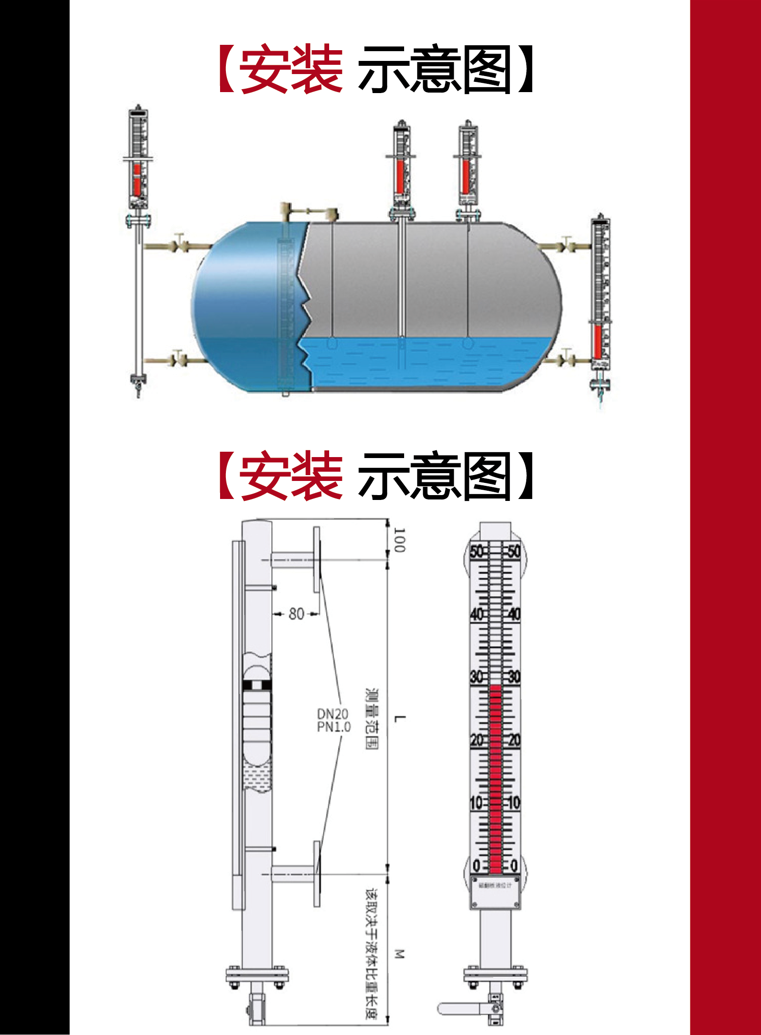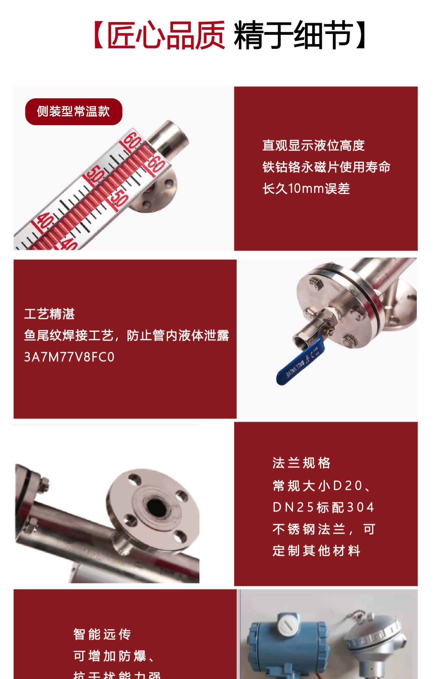 UHZ磁性翻板液位水位計儀器遠傳側(cè)裝頂裝不銹鋼內(nèi)襯防腐蝕浮球